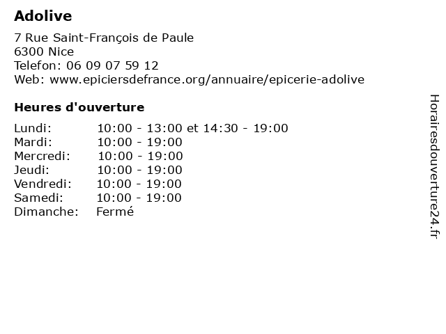 | Lundi | 10:00-13:00 et 14:30-19:00 |