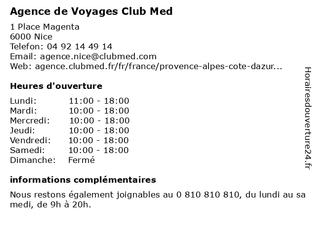 1 Club Player Bistrot (Distance: 0,00 km) 1 Place Magenta, 06000 Nice bistrot, brasserie, café, club, player, restaurant, restauration 2 Bleu Voyages (Distance: 0,07 km) 16 Rue de la Liberté, 06000 Nice bleu, service, séjour, séjours vacances, voyages 3 Bleu Voyages (du 4 au 30 août) (Distance: 0,07 km) 16 Rue de la Liberté, 06000 Nice 30, août, au, bleu, du, service, séjour, séjours vacances, voyages 5 Le Club Nautique de Nice - Outside school holidays (Distance: 0,11 km) 1 rue Maurice Jaubert, 06000 Nice adults, club, de, development, holidays, initiation, le, nautique, nice, outside, school, sessions 6 Le Club Nautique de Nice - Outside school holidays (Distance: 0,11 km) 1 rue Maurice Jaubert, 06000 Nice adults, club, de, development, holidays, initiation, le, nautique, nice, outside, school, sessions |
