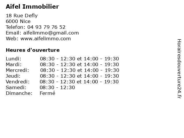 | Lundi | 08:30-12:30 et 14:00-19:30 |