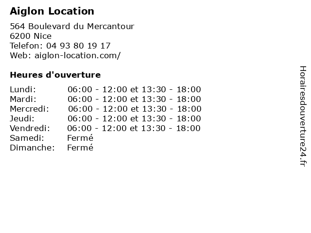 | Lundi | 06:00-12:00 et 13:30-18:00 |