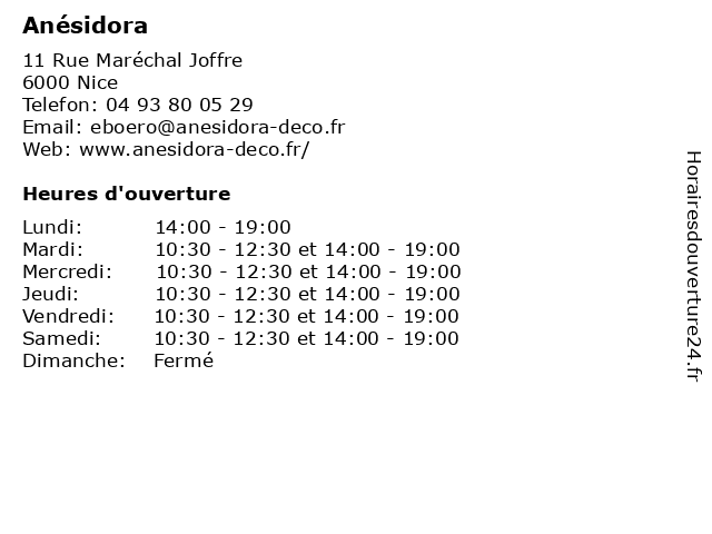 | Mardi | 10:30-12:30 et 14:00-19:00 |