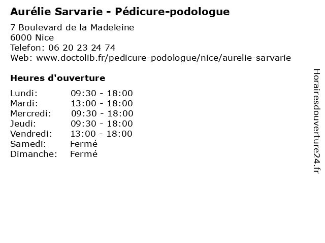 1 Vanessa Tamburrini - Pédicure-podologue (Distance: 0,73 km) 2 Boulevard François Grosso, 06000 Nice pedicure, pied, podologue, pédicure, sante, tamburrini, vanessa 2 Jean-Jacques Amsellem - Pédicure-podologue (Distance: 0,91 km) 105 Bis rue de France, 06000 Nice amsellem, bilan, consultation, docteur, jacques, jean, médecin, orthoplastie, pieds, podologue, pédicure, semelles orthopédiques, soin, sport 3 Lise-Aurélie Samak-Bracco - Sage-femme (Distance: 1,19 km) 151 Route de Saint Antoine, 06200 Nice aurelie, aurélie, bracco, consultation, docteur, dr, femme, lise, med, médecin, sage, samak, traitement 4 Maître Aurélie Giordanengo - Avocate (Distance: 1,29 km) 36 rue Verdi, 06000 Nice aurélie, avocate, avocats, civils, droits, giordanengo, juridiques, maître 5 Maître Aurélie Soustelle - Avocate (Distance: 1,34 km) 14 rue Guiglia, 06000 Nice aurélie, avocate, avocats, civils, droits, juridiques, maître, soustelle 6 Laura Guillaud - Pédicure-podologue (Distance: 1,66 km) 12 Rue de France, 06000 Nice cheville, guillaud, laura, orteil, pied, podologue, pédicure |