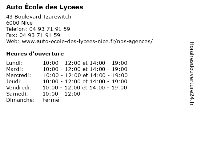 | Lundi | 10:00-12:00 et 14:00-19:00 |