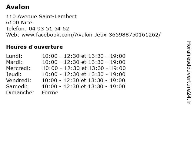 | Vendredi | 10:00-12:30 et 13:30-19:00 |