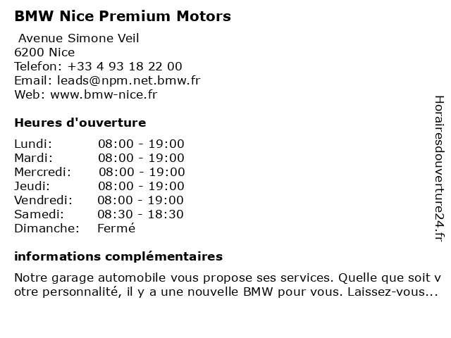 1 BMW - Nice Premium Motors - Pièces de rechange (Distance: 0,01 km) 116 Avenue Simone Veil, 06200 Nice atelier, automobile, bmw, concessionnaire, de, garage, motors, neuve, nice, occasion, pièce, pièces, premium, rechange, réparation, vente 2 BMW (Distance: 0,65 km) . Boulevard Maurice Slama, 06200 Nice automobiles, bmw, concéssionnaire, garage, motos 3 BMW (Service Après-Vente) (Distance: 0,65 km) . Boulevard Maurice Slama, 06200 Nice après, automobiles, bmw, concéssionnaire, garage, motos, service, vente 4 BMW (Pièces Détachées) (Distance: 0,65 km) . Boulevard Maurice Slama, 06200 Nice automobiles, bmw, concéssionnaire, détachées, garage, motos, pièces 5 C&C Nice - Apple Premium Reseller et Centre de Services Agréé (Distance: 4,35 km) 7 Rue Dante, 06000 Nice agréé, apple, c&c, centre, de, et, nice, premium, reseller, services 6 |