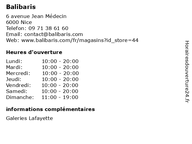 Horaires d'ouverture |