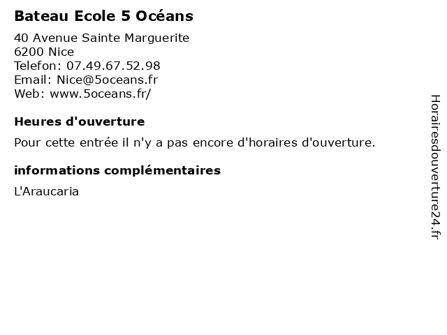 Termes de recherche pour Bateau Ecole 5 Océans:nice, bateau, ecole, permis, formation, navigation, oceans, bateau école, 5 oceans |