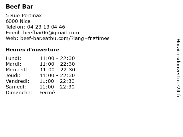 | Jeudi | 11:00-22:30 |
