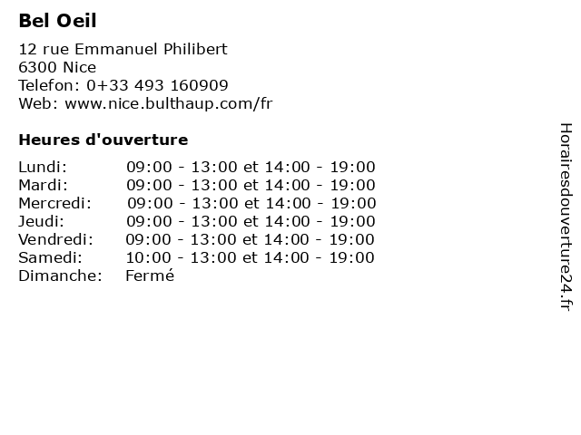 | Lundi | 09:00-13:00 et 14:00-19:00 |