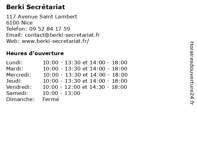 | Mercredi | 10:00-13:30 et 14:00-18:00 |