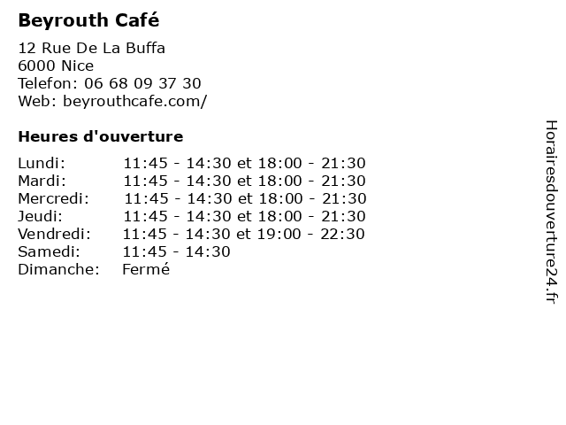 | Mercredi | 11:45-14:30 et 18:00-21:30 |