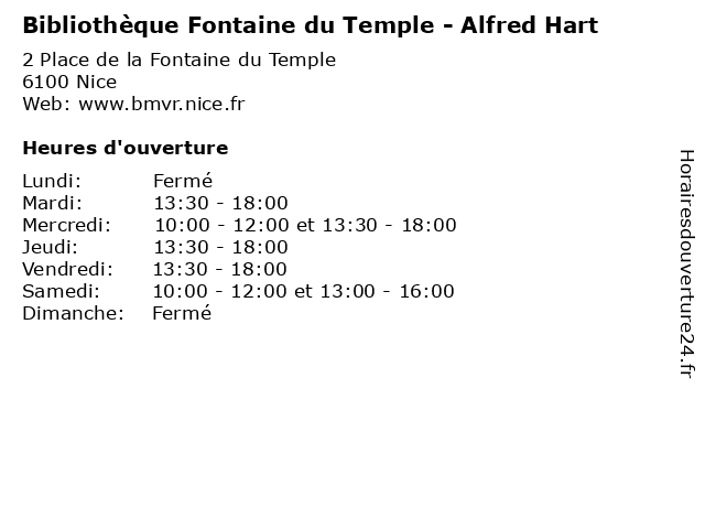 | Mercredi | 10:00-12:00 et 13:30-18:00 |