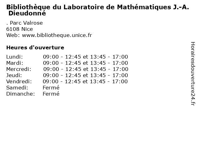 Termes de recherche pour Bibliothèque du Laboratoire de Mathématiques J.-A. Dieudonné:du, de, laboratoire, services, universite, bibliotheque, j., a., livre, dieudonné, mediatheque, mathématiques |