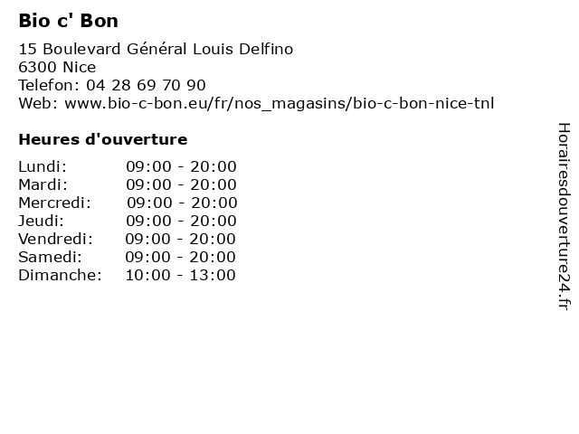 1 Bio C' Bon (Distance: 1,66 km) 1 avenue Georges Clémenceau, 06000 Nice alimentation, alimentation bio, bio, bon, c', supermarché 2 Bio c' Bon (Distance: 18,44 km) 6 avenue Thiers, 06500 Menton alimentation, bio, bon, c', courses, magasin, supermarché 3 Bio C' Bon (Distance: 19,06 km) 42 avenue Robert Soleau, 06600 Antibes alimentation, alimentation bio, bio, bon, c', supermarché 4 Belle & Bio - Lavage Auto (Distance: 0,00 km) 15 Boulevard Du General Delfino, 06300 Nice auto, belle, bio, centres, lavage, station lavage, écologique 6 Cheminée Bio Art Concept (Distance: 0,62 km) 1 Boulevard de Riquier, 06300 Nice art, bio, cheminée, concept |
