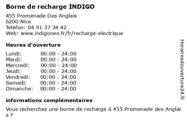 1 Borne de recharge INDIGO (Distance: 3,19 km) 57 Avenue De La Californie, 06200 Nice borne, de, indigo, recharge 2 Borne de recharge INDIGO (Distance: 3,50 km) 4 Rue De La Corderie, 06000 Nice borne, de, indigo, recharge 3 Borne de recharge INDIGO (Distance: 3,99 km) Passage Des Pêcheurs, 06800 Cagnes-sur-Mer borne, de, indigo, recharge 4 Borne de recharge INDIGO (Distance: 5,38 km) 20 Boulevard Victor Hugo, 06000 Nice borne, de, indigo, recharge 5 Borne de recharge INDIGO (Distance: 5,60 km) 16 Avenue Félix Faure, 06000 Nice borne, de, indigo, recharge 6 |
