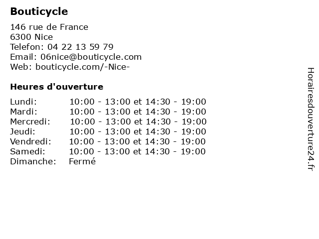 | Samedi | 10:00-13:00 et 14:30-19:00 |