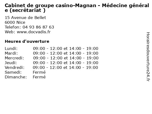 Termes de recherche pour Cabinet de groupe casino-Magnan - Médecine générale (secrétariat ):de, cabinet, générale, medecine, casino, santé, groupe, magnan, secretariat, docteur, consultation |