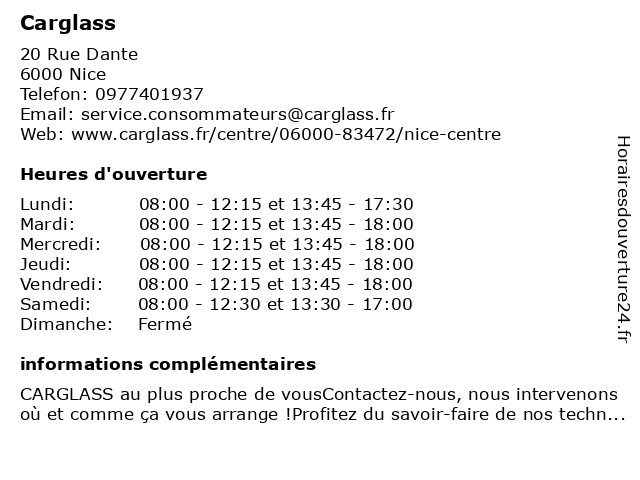 1 Carglass (Distance: 2,65 km) 15 Avenue Saint-Augustin, 06200 Nice bris, carglass, pare-brise, remplacement 2 Carglass (Distance: 4,58 km) 59 route de Grenoble, 06200 NICE carglass, rear window, replacing headlights, side wndow, windshield, wipers blades 3 Carglass (Distance: 8,30 km) 79 Avenue de Nice, 06800 Cagnes-sur-Mer bris, carglass, pare-brise, remplacement 4 Carglass (Distance: 17,44 km) 270 Allée des Terriers, 06600 Antibes bris, carglass, pare-brise, remplacement 5 Carglass Maison (Distance: 17,47 km) 165 route des cistes, 06600 Antibes carglass, carglass maison, carglass®, dépannage, maison, menuiserie, peinture, plomberie, recherche de fuite, rénovation, serrurerie, techniciens, vitrerie, électricité 6 France Pare-Brise NICE (Distance: 1,33 km) 28 bis Rue Trachel, 06000 Nice brise, changement pare-brise, fissure pare-brise, france, glace latérale, impact pare-brise, lunette arrière, nice, pare, pare-brise, remplacement pare-brise, réparation pare-brise, vitre latérale, vitre voiture |