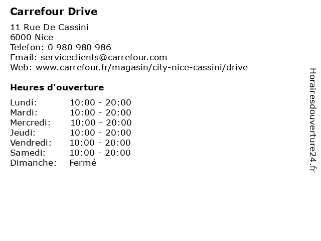 1 Carrefour Drive (Distance: 0,79 km) 15 Boulevard Du General Delfino, 06300 Nice boutique, carrefour, drive, fleur, fleuriste, fleurs, plantes 2 Carrefour Drive (Distance: 1,09 km) 17-19 Avenue Desambrois, 06000 Nice alimentaire, carrefour, courses, drive, en ligne, magasin 3 Carrefour Drive (Distance: 1,34 km) 31 Rue Lepante, 06000 Nice alimentaire, carrefour, courses, drive, en ligne, magasin 4 Carrefour Drive (Distance: 1,73 km) 2-4 Boulevard Du Mont Boron, 06300 Nice alimentaire, carrefour, courses, drive, en ligne, magasin 5 Carrefour Drive (Distance: 2,35 km) 136 bis Boulevard Gambetta, 06000 Nice alimentaire, carrefour, courses, drive, en ligne, magasin 6 Carrefour Drive (Distance: 2,87 km) 165 Rue De France, 06000 Nice alimentaire, carrefour, courses, drive, en ligne, magasin |