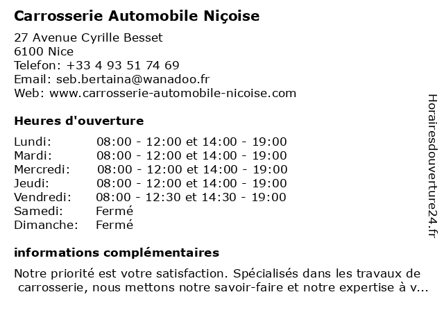 | Lundi | 08:00-12:00 et 14:00-19:00 |