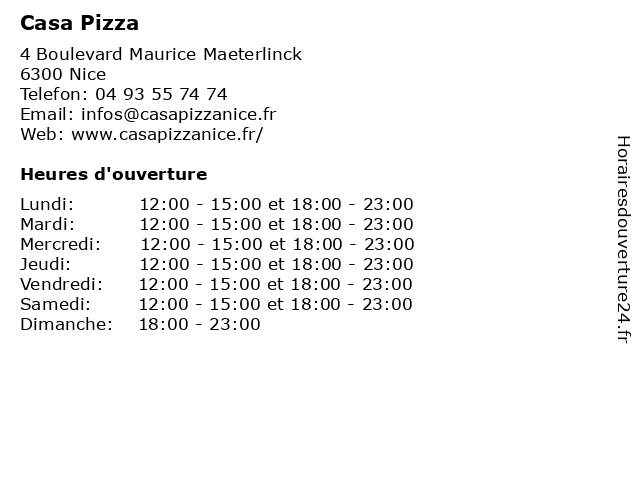 | Samedi | 12:00-15:00 et 18:00-23:00 |