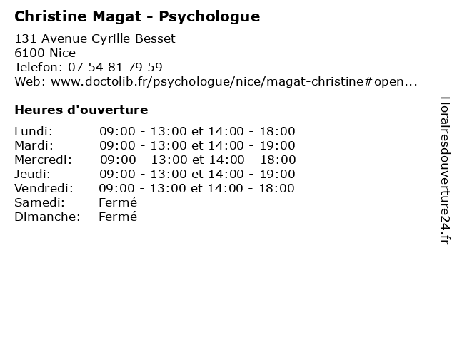 | Mardi | 09:00-13:00 et 14:00-19:00 |