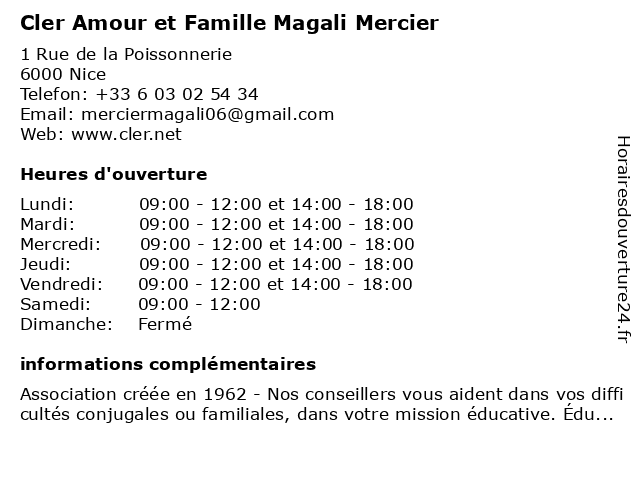 | Lundi | 09:00-12:00 et 14:00-18:00 |