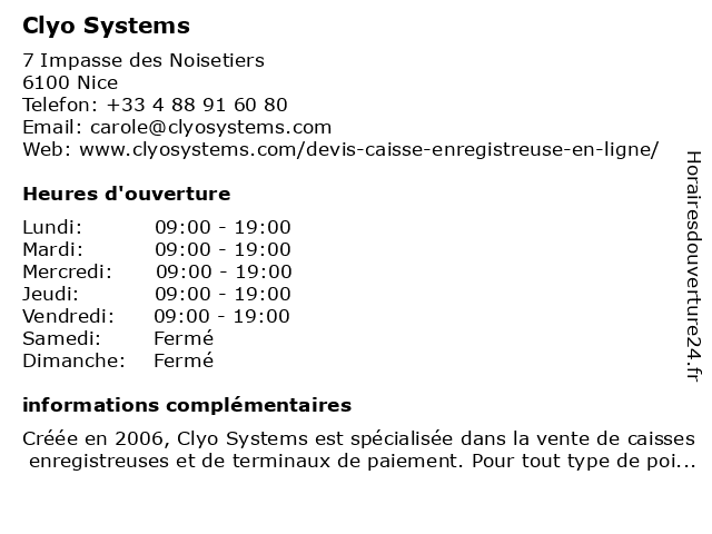 | Lundi | 09:00-19:00 |