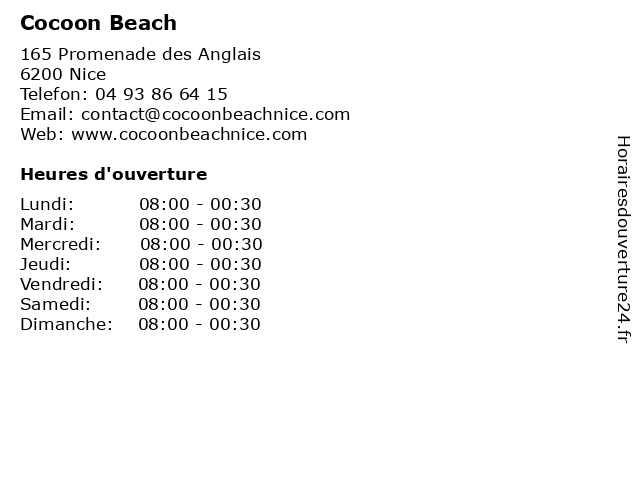 | Samedi | 08:00-00:30 |