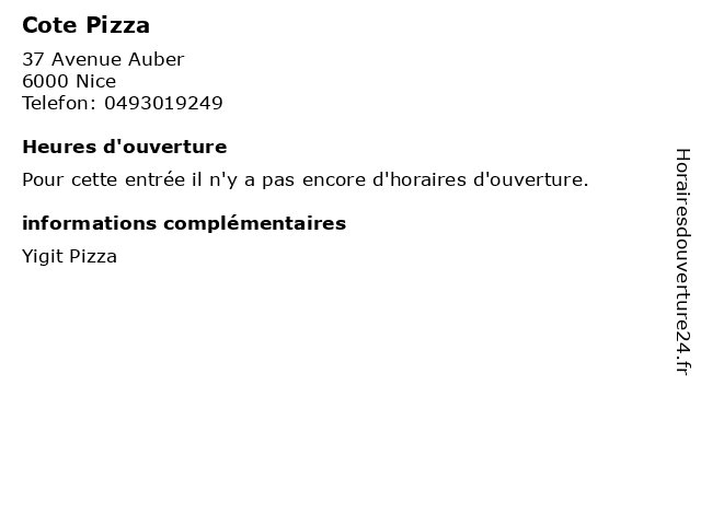 1 La Pizza Au Feu de Bois (Distance: 0,00 km) 37 avenue Auber, 06000 Nice au, bois, café, de, feu, italien, la, pizza, pizzas, pizzeria, restaurant, restauration 2 Pizza d'Or (Distance: 0,19 km) 34 Avenue Georges Clemenceau, 06000 Nice café, d'or, italien, pizza, pizzas, pizzeria, restaurant, restauration 5 Mambo Pizza (Distance: 0,33 km) 12 Rue Trachel, 06000 Nice commandes, mambo, pizza, pizzeria, restaurants 6 Past'n Pizza (Distance: 0,38 km) 29 Rue Assalit, 06000 Nice boisson, cuisine, past'n, pizza, restaurant |