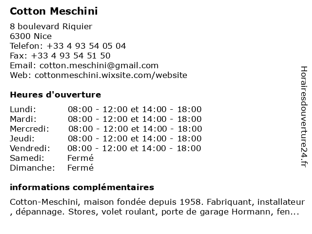 Lundi | 08:00-12:00 et 14:00-18:00 |
