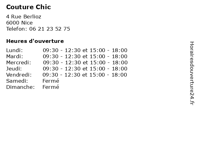 | Mardi | 09:30-12:30 et 15:00-18:00 |