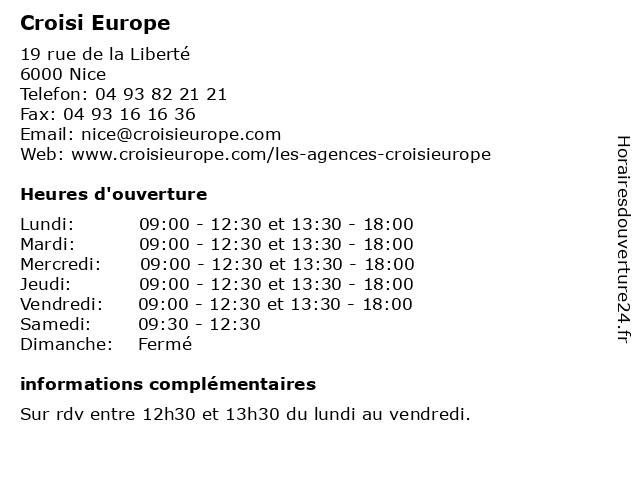 | Mercredi | 09:00-12:30 et 13:30-18:00 |