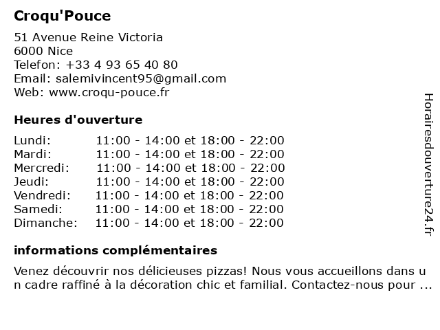 | Lundi | 11:00-14:00 et 18:00-22:00 |