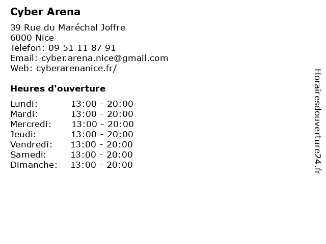 | Dimanche | 13:00-20:00 |