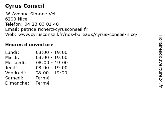 | Lundi | 08:00-19:00 |
