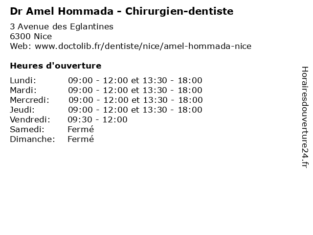 Lundi | 09:00-12:00 et 13:30-18:00 |