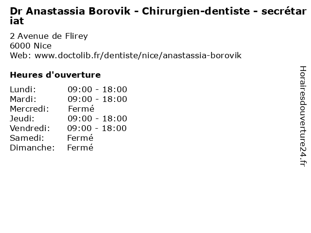 1 Dr Anastassia Borovik - Chirurgien-dentiste (Distance: 58,83 km) - Rue de la Magnanerie, 83520 Roquebrune-sur-Argens anastassia, borovik, chirurgien, dentaire, dentiste, dr, implantologie, parodontologie 2 Dr Celine Benejam - Chirurgien-dentiste (Distance: 0,01 km) 2 Avenue de Flirey, 06000 Nice benejam, celine, chirurgien, dentaire, dentiste, dr, implantologie, parodontologie 3 Dr Sydney Touret - Chirurgien-dentiste (Distance: 0,01 km) 2 Avenue de Flirey, 06000 Nice chirurgien, dentaire, dentiste, dr, implantologie, parodontologie, sydney, touret 4 Dr Marine Sanchez - Gériatre (Distance: 0,18 km) 4 Avenue Reine Victoria, 06000 Nice chirurgien, consultation, dentiste, docteur, dr, gériatre, marine, med, médecin, médecine, sanchez, secrétariat, traitement 5 Dr Veronique Alunni - Pneumologue (Distance: 0,18 km) 4 Avenue Reine Victoria, 06200 Nice alunni, dr, médecins, médicaments, pneumologue, santé, secrétariat, spécialiste, veronique 6 Dr Thierry Fosse - Médecin généraliste - secrétariat (Distance: 0,18 km) 4 Avenue Reine Victoria, 06000 Nice dr, fosse, généraliste, médecin, médecins, médicaments, santé, secrétariat, spécialiste, thierry |