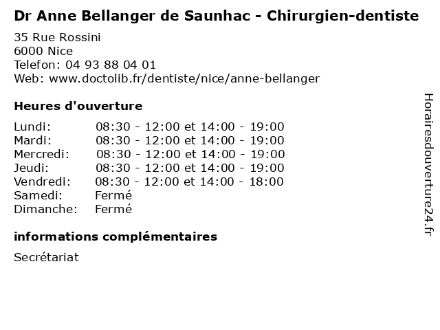 | Lundi | 08:30-12:00 et 14:00-19:00 |
