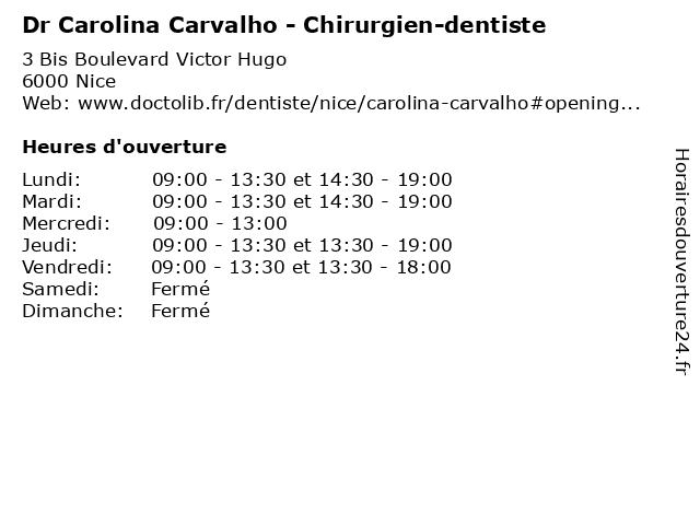 | Lundi | 09:00-13:30 et 14:30-19:00 |