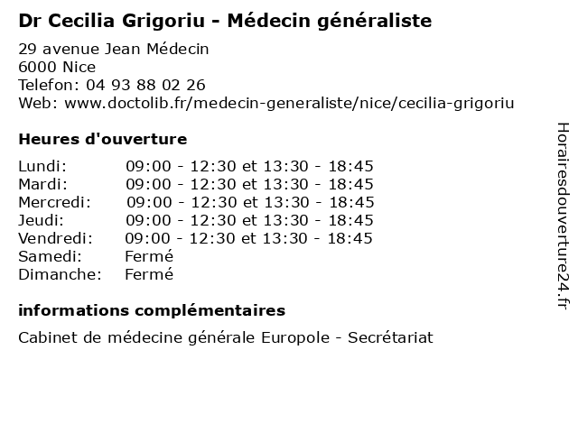 Termes de recherche pour Dr Cecilia Grigoriu - Médecin généraliste:soin, cécilia, généraliste, docteur, médecin, consultation, dr, medecine générale, grigoriu |