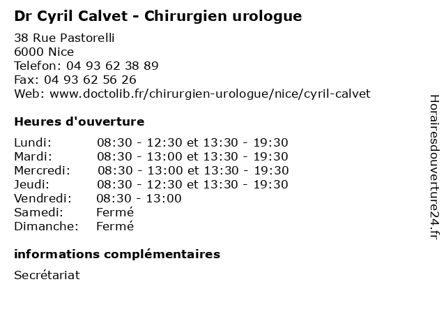 | Jeudi | 08:30-12:30 et 13:30-19:30 |
