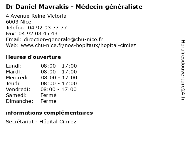 1 Dr Daniel Re - Onco-hématologue (Distance: 0,65 km) 33 Avenue de Valombrose, 06189 Nice consultation, daniel, docteur, dr, hématologue, med, médecin, médecine, onco, re, traitement 2 Pr Daniel Chevallier - Chirurgien urologue (Distance: 0,80 km) 30 Avenue de la Voie Romaine, 06001 Nice chevallier, chirurgien, consultation, daniel, docteur, med, médecin, médecine, pr, traitement, urologue 3 Dr Milou-Daniel Drici - Cardiologue (Distance: 0,80 km) 30 Voie Romaine, 06001 Nice cardiologue, consultation, daniel, docteur, dr, drici, med, milou, médecin, traitement 4 Dr Daniel Navarro - Médecin généraliste (Distance: 0,80 km) 30 Voie Romaine, 06001 Nice consultation, daniel, docteur, dr, généraliste, med, médecin, navarro, traitement 6 Dr Daniel Zana - Orthodontiste (Distance: 1,74 km) 2 rue Vernier, 06000 Nice blanchiment de dent, daniel, dentiste, docteur, docteur daniel zana, dr, esthétique, orthodontiste, zana |