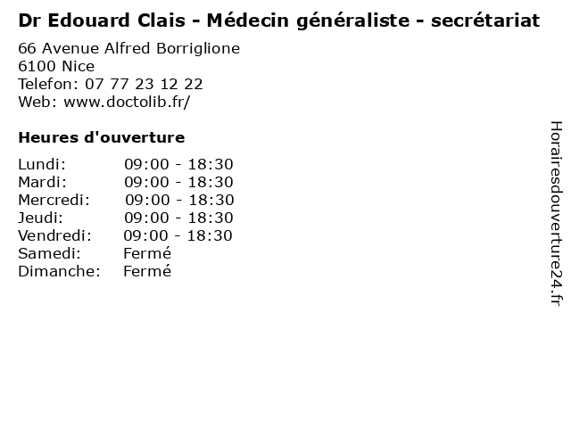 | Lundi | 09:00-18:30 |