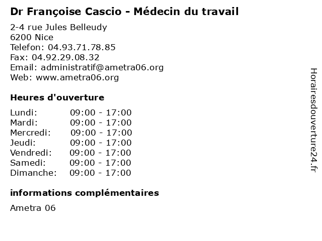 1 Dr Françoise Aicardi - Médecin du travail (Distance: 0,00 km) 2-4 rue Jules Belleudy, 06200 Nice aicardi, consultation, docteur, dr, du, francoise, françoise, med, médecin, traitement, travail 2 Dr Françoise Anave Frapech - Médecin biologiste (Distance: 2,81 km) 57 Avenue de la Californie, 06200 Nice anave, biologiste, consultation, docteur, dr, francoise, françoise, frapech, med, médecin, traitement 3 Psychologue Françoise Astolfi (Distance: 3,21 km) 13 Avenue de Bellet, 06200 Nice astolfi, françoise, psychologue 4 Dr Françoise Bellmann - Pédiatre (Distance: 4,92 km) 29 Avenue Auguste Verola, 06200 Nice bebe, bellmann, dr, francoise, françoise, nourisson, pédiatre, pédiatrie 5 Maître Marie-Françoise Picon - Avocate (Distance: 5,68 km) 17 Rue Alfred Mortier, 06000 Nice avocate, avocats, civils, droits, francoise, françoise, juridiques, marie, maître, picon 6 Dr Françoise Taillan - Médecin généraliste - secrétariat (Distance: 7,19 km) 4 Avenue Reine Victoria, 06000 Nice dr, françoise, généraliste, médecin, médecins, médicaments, santé, secrétariat, spécialiste, taillan |