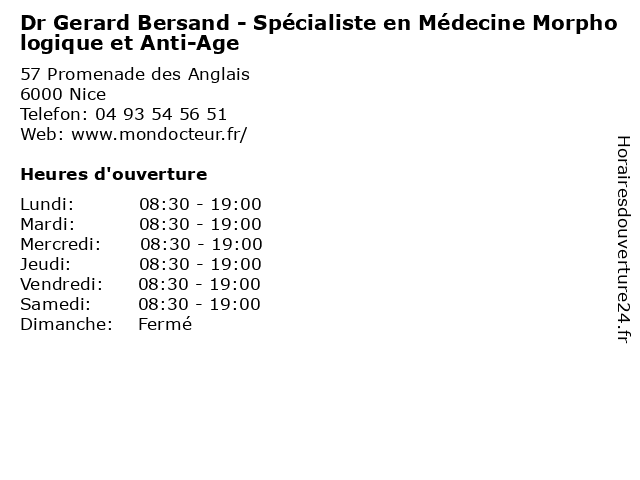 1 Dr Gérard Bersand - Médecin morphologique et anti-âge - secrétariat (Distance: 0,02 km) 57 Promenade des Anglais, 06000 Nice anti, bersand, consultation, docteur, dr, et, gérard, med, morphologique, médecin, médecine, secrétariat, traitement, âge 2 Dr Rania Chahine - Médecin morphologique et anti-âge - secrétariat (Distance: 0,02 km) 57 Promenade des Anglais, 06000 Nice anti, chahine, consultation, docteur, dr, et, med, morphologique, médecin, médecine, rania, secrétariat, traitement, âge 3 Dr Rania Chahine - Médecin morphologique et anti-âge (Distance: 0,02 km) 57 Promenade des Anglais,, 06000 Nice anti, chahine, dr, et, morphologique, médecin, médecins, médicaments, rania, santé, secrétariat, spécialiste, âge 4 Dr. Gerard Perez - Dentiste (Distance: 0,16 km) 8 Rue Andrioli, 06000 Nice dentiste, docteur, dr., gerard, medecins, perez, sante 5 Comme En Chine (Distance: 0,23 km) 2 Rue Joseph Fricero, 06000 Nice chine, comme, hong, jia, restaurants 6 Centre de sante naturelle Gerard ohayon SAS (Distance: 0,30 km) 3 Rue Alexis Mossa, 06000 Nice centre, de, gerard, naturelle, ohayon, sante, sas |