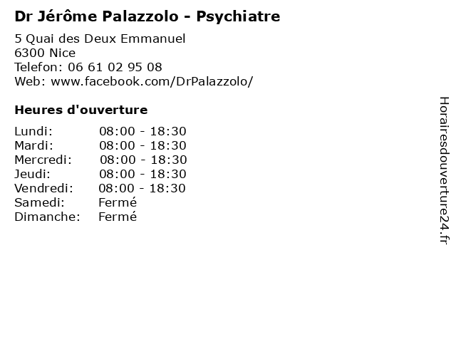 1 Dr Sévan Oksayan - Psychiatre (Distance: 0,91 km) 7 Boulevard Général Louis Delfino, 06300 Nice dr, folie, oksayan, psychiatre, psychiatrie, psychiatrique, sévan 2 Dr Romain Sassus - Psychiatre (Distance: 1,20 km) 54 Rue Gioffredo, 06000 Nice dr, folie, psychiatre, psychiatrie, psychiatrique, romain, sassus 4 Dr Charles-Henri Beau - Psychiatre (Distance: 1,63 km) 4 Rue Alphonse Karr, 06000 Nice beau, charles, consultation, docteur, dr, dr., henri, psychiatre, psychiatrie, santé 5 Dr Muriel Sasia - Psychiatre (Distance: 1,66 km) 19 Rue de la Liberté, 06000 Nice dr, folie, muriel, psychiatre, psychiatrie, psychiatrique, sasia 6 Dr Bruno Faucheur - Psychiatre - secrétariat (Distance: 1,73 km) 4 Avenue Georges Clemenceau, 06000 Nice bruno, cherikh, consultation, docteur, dr, faredj, faucheur, med, médecin, médecine, psychiatre, secrétariat, traitement |