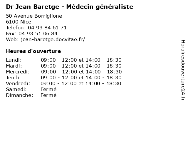 | Lundi | 09:00-12:00 et 14:00-18:30 |