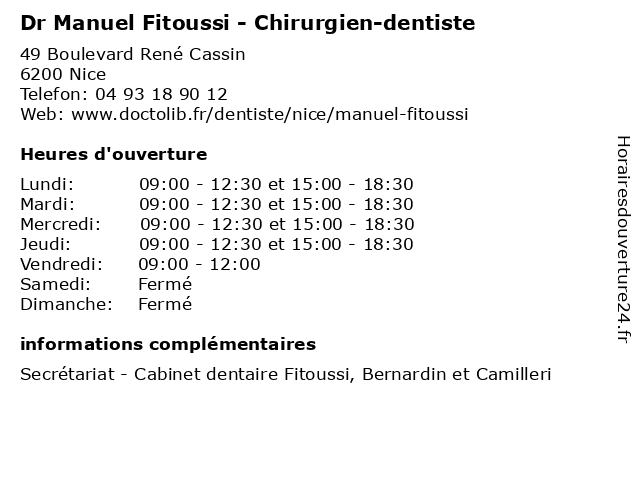 Lundi | 09:00-12:30 et 15:00-18:30 |
