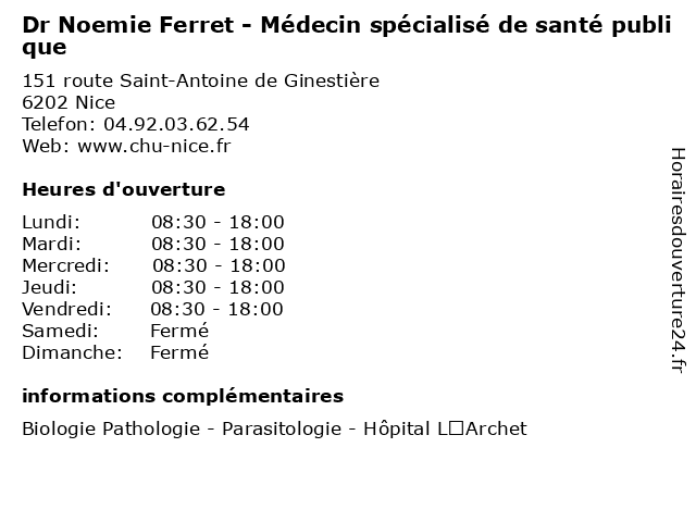 1 Dr Elodie Ferret - Anesthésiste réanimateur (Distance: 0,00 km) 151 route Saint-Antoine de Ginestière, 06202 Nice anesthésie, anesthésiste, anesthésistes, dr, elodie, ferret, hôpital, l’archet, réanimateur, réanimateurs 2 Dr Nicole Ferret - Pédiatre (Distance: 1,50 km) 151 Route de Saint Antoine, 06200 Nice consultation, docteur, dr, ferret, med, médecin, nicole, pédiatre, traitement 3 Agence régionale de santé (ARS) - Délégation départementale - Alpes-Maritimes (Distance: 3,65 km) 147 boulevard du Mercantour, 06202 Nice administration, agence, alpes, ars, de, délégation, départementale, maritimes, organismes, publics, régionale, santé, services 4 Joaillier Ferret (Distance: 4,33 km) 2 avenue de Verdun, 06000 Nice bijouteries, bracelets, ferret, joaillier, montres, rollex 5 FERRET Nice - ROLEX Détaillant Officiel (Distance: 4,33 km) 2 Av. De Verdun, 06000 Nice bijouterie, détaillant, ferret, nice, officiel, rolex 6 Ferret (Distance: 5,39 km) - Avenue Eugène Donadeï, 06700 Saint-Laurent-du-Var beaute&sante, bijoux, chausures, decoration, ferret, mode enfants, mode femmes, mode hommes, optique, restaurant, sport |